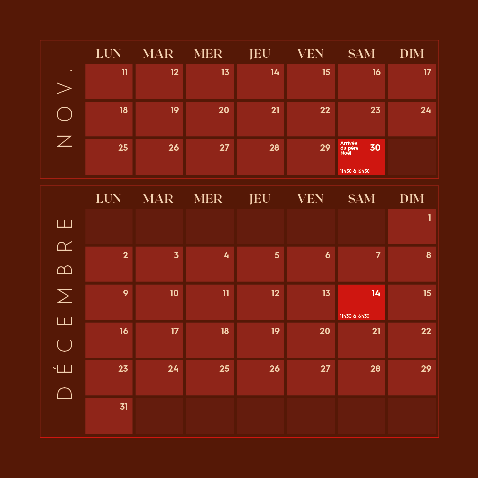 On November 30 and December 14, come and meet Santa Claus in his kingdom! The perfect opportunity to dive into the holiday spirit and create magical memories with your family!